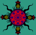 They live on the Magatama Planet at the center of Chu-Teng. Their four heads read the flow of the present, past, and future, and they have a habit of stockpiling within their carapace the materials that drift into Chu-Teng. Each one of the sacred Su-game Clan is enshrined in a different spatial dimension on the planet. They live by using the metallic elements put in their altars as nourishment.